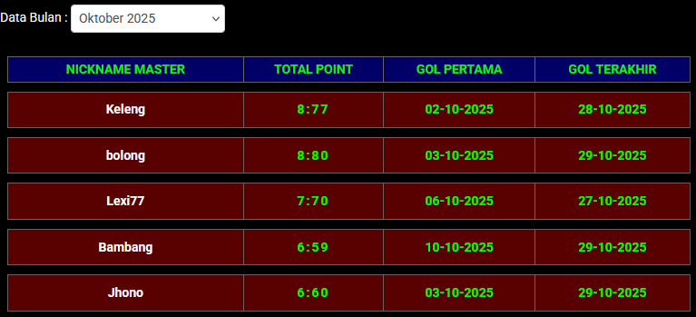 - Penerima Hadiah: Nickname peringkat 1-5 di Tabel Edisi Bulanan (berdasarkan poin tertinggi/jumlah gol dari awal hingga akhir bulan).